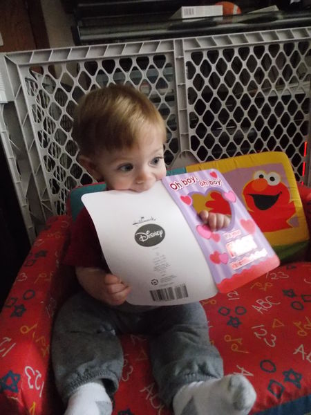 Last but not least, Keaten's first Valentine's Day. Mommy struggled with trying to figure out what to get her little man, after all, Daddy has it easy, girls love flowers. Mommy got him Num Num crackers. She thinks that in the future his special gift will be one on one time with mommy and going to get a special treat.