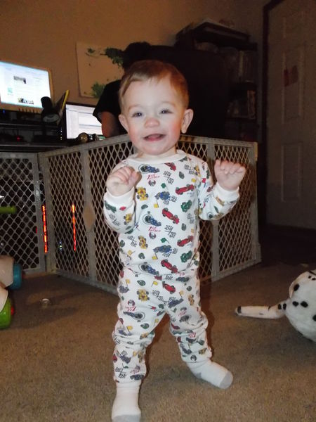 Keaten is also trying to walk. He is sporadically taking one or two unassisted steps, be it between objects (the fence and the couch) or between Mommy and I. Believe it or not, we have been encouraging him to start walking, as we think it will be hilariousness when he starts chasing after his sister! Plus, I can't wait to hear of all of the tales Mommy has once they are both running around the house. I can only imagine some of the stories that may come from that.