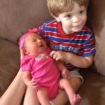 And of course then there is Baby Olivia. Keaten loves her! It is actually quite funny how much he pays attention to her. In fact, he has even held Olivia a few times, however, I feel there is an ulterior motive to that). When we were in the hospital visit Auntie Megan and Baby Olivia, we were sitting on the sofa and Mommy wanted to pick up Baby Olivia again. Keaten caught wind of this and opened his arms and made a few grunts to signal he wanted to hold her. Mommy not wanting to waste a great opportunity quickly handed Baby Olivia to him, placing her on his lap. The smirk on his face said it all. "I got you to let go of Baby Olivia and you find me cute as a button right now!" It was just cute and funny all at the same time and he did this a few more times once Baby Olivia was home with her parents..