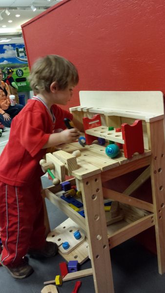 What is even more challenging is the fact that Mommy is having a hard time adjusting to having one child at home all day again. With it being just her and Keaten, she is now the sole focus of his play date adventures, which typically involve trains, tools, cars, or building something. I'm sure she is treasuring these moments as all too soon, we'll be shipping him off to school with his sister... and what will she do then?